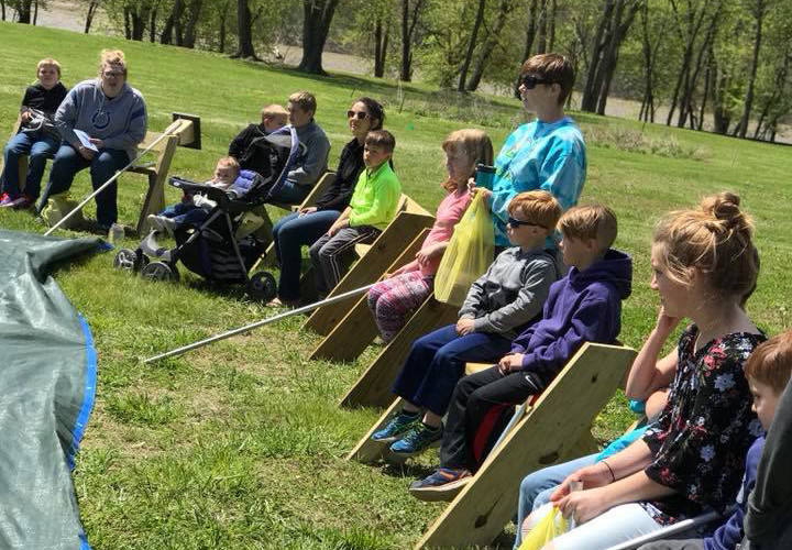 Families huddled in the cold and windy outdoors (right) Saturday outside The Heritage Trail Conservancy office to learn about purple martins and their houses on poles. The conservancy has two poles with houses for purple martin nests, but so far has attracted only one male who hung around during the presentation. One of the multifamily units was lowered so the children could see what one of the units looks like if a sparrow moves in — a dirty nest built partly from litter-like cigarette butts and pieces of paper. Sparrows are enemies of purple martins and will get into the nests and kill the baby birds or destroy the eggs. Apart from the purple martin condos are a sparrow birdhouse and a bluebird house to encourage those birds to nest there instead of in the pods intended for purple martins, which will leave the area if there are squatters. Starlings also are aggressive toward purple martins, but the martin houses at the Heritage Trail are designed so starlings cannot get inside. At the end of the “Caring for the Birds” program, the children received a surprise — brightly colored toy purple martins and bluebirds, which when squeezed played the bird’s song. The workshop was sponsored by Burris Electric & Plumbing Supply Inc., Bulk Truck & Transport Service Inc., dentist David Butler, Friendship State Bank, Horst’s Little Bakery Haus and Lytle Funeral Homes & Cremation Service.